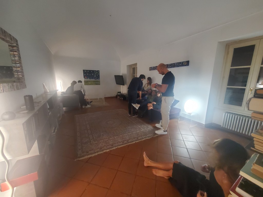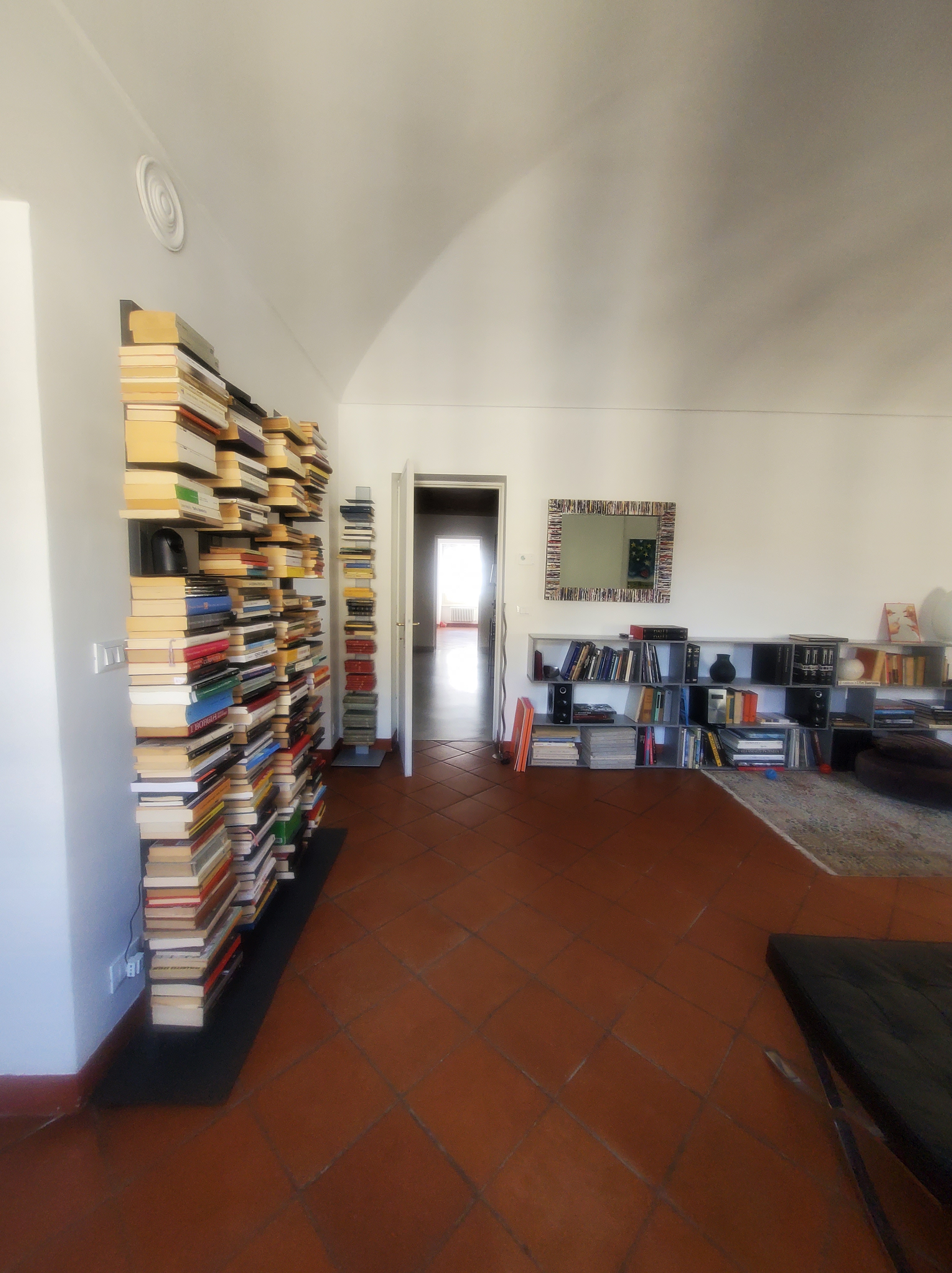la scala interna dell’appartamento, con stucchi sulla volta del soffitto e un pianoforte tra i due piani, è perfetta per esporre opere d’arte, presentare libri e progetti, fare musica, degustando un buon bicchiere di vino e drinks , chiacchierando con gli amici. il doppio salone adiacente e la sala da pranzo con opere di arte contemporanea renderanno l’evento unico.